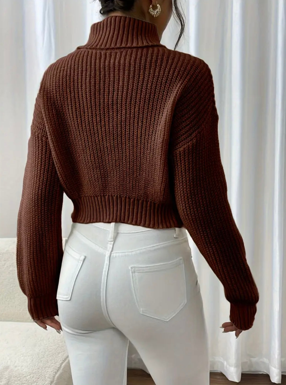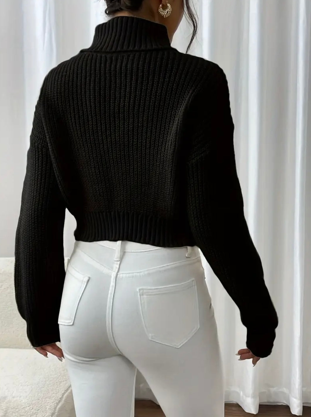 Top cómodo y con elasticidad media ideal para otoño-invierno con un estampado de mariposas, cuello alto y mangas largas.