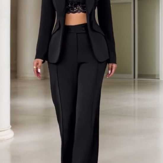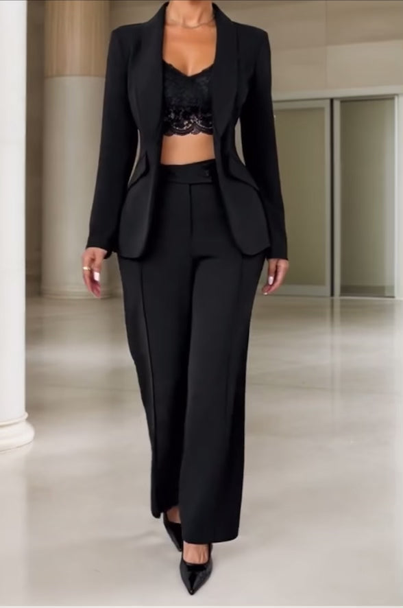 Traje elegante con solapa de cuello con doble pecho y pantalones largos, perfecto para sentirte una jefa, seductora, femenina, audaz