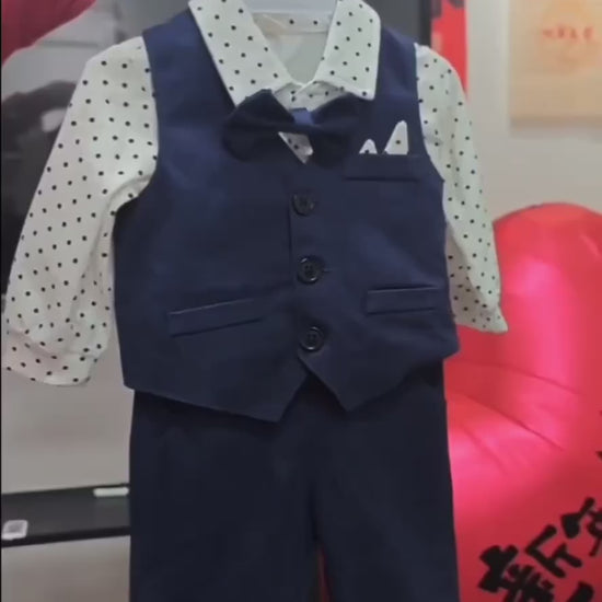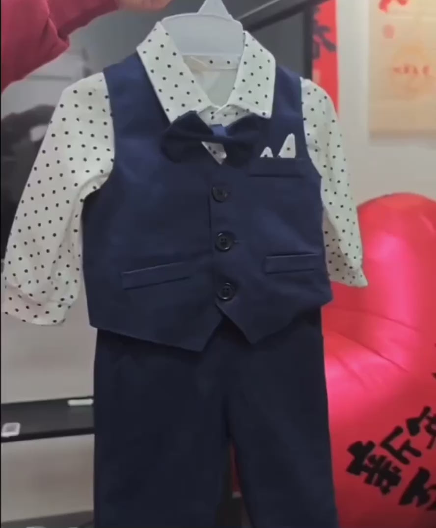 Traje para Niños: Mono, Chaleco y Pantalones, Tres Piezas con Lunares para Bebés, Adecuado para Fiestas, Cumpleaños, Bodas, Ocasiones Formales, Primavera y Otoño