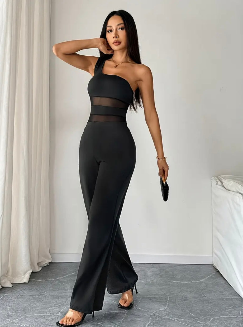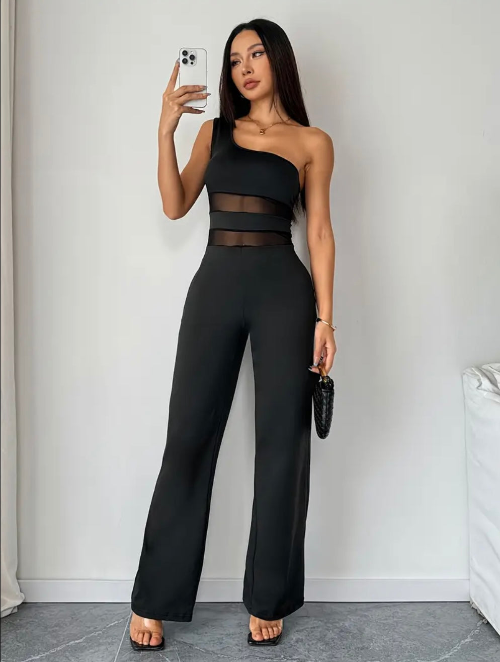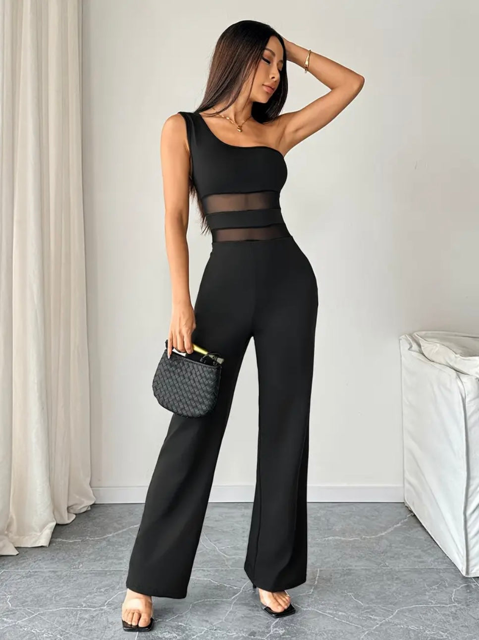Mono elegante con trasparencia, tela suave y ajustada con corte recto